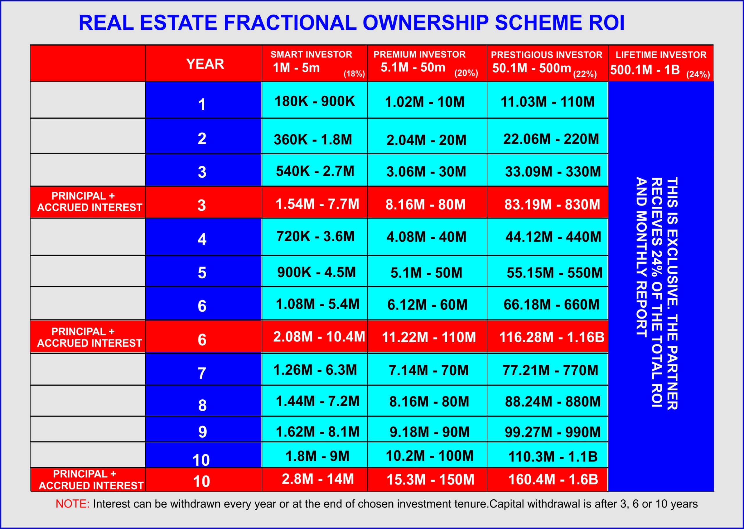 - You will be entitled to 24% returns on all the Blue partners' investments.